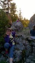 Następny dzień zapowiadał się na trudny i wyczerpujący ponieważ czekała nas wspinaczka na najwyższy szczyt Pienin Środkowych należący do Masywu Trzech Koron, liczący 982 m.n.p.m. – Okrąglicę. Tam znajduje się platforma widokowa z barierkami. Wędrówkę rozpoczęliśmy około godzin 10.00 i pięliśmy się dzielnie zwartą grupą w górę. Robiliśmy częste postoje ponieważ niektórzy z nas dość szybko zmęczyli się marszem a szlak okazał się dość ślizgi po wcześniejszym deszczu. Trzeba było bardzo uważać i ostrożnie stawiać stopy. Po trzech godzinach marszu zatrzymaliśmy się na dłuższy odpoczynek i zjedliśmy kanapki. Tu okazało się, że niektórzy z uczestników wycieczki postanowili zostać z panią Izą Śmieszniak i nie podchodzić wyżej. Jednak większość z nas zapakowała plecaki i ruszyła do ostatecznego zdobycia szczytu. Wysiłek opłacił się, ponieważ widoki z Trzech Koron na okolicę zapierały dech w piersiach.