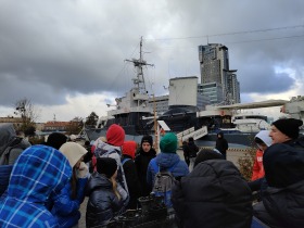 Dzisiejszy dzień spędziliśmy w najmłodszym mieście Trójmiasta- Gdyni. Zaraz po śniadaniu pojechaliśmy na Skwer Kościuszki. To ulubione miejsce spacerów mieszkańców i turystów. Atrakcją są cumujące zabytkowe okręty Dar Pomorza i ORP Błyskawica. Ostatnim punktem naszego programu był pobyt w Centrum Nauki "Eksperyment".