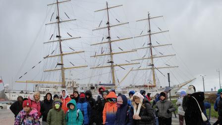 • Dzisiejszy dzień spędziliśmy w najmłodszym mieście Trójmiasta- Gdyni. Zaraz po śniadaniu pojechaliśmy na Skwer Kościuszki. To ulubione miejsce spacerów mieszkańców i turystów. Atrakcją są cumujące zabytkowe okręty Dar Pomorza i ORP Błyskawica.  Ostatnim punktem naszego programu był pobyt w Centrum Nauki "Eksperyment"