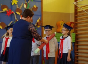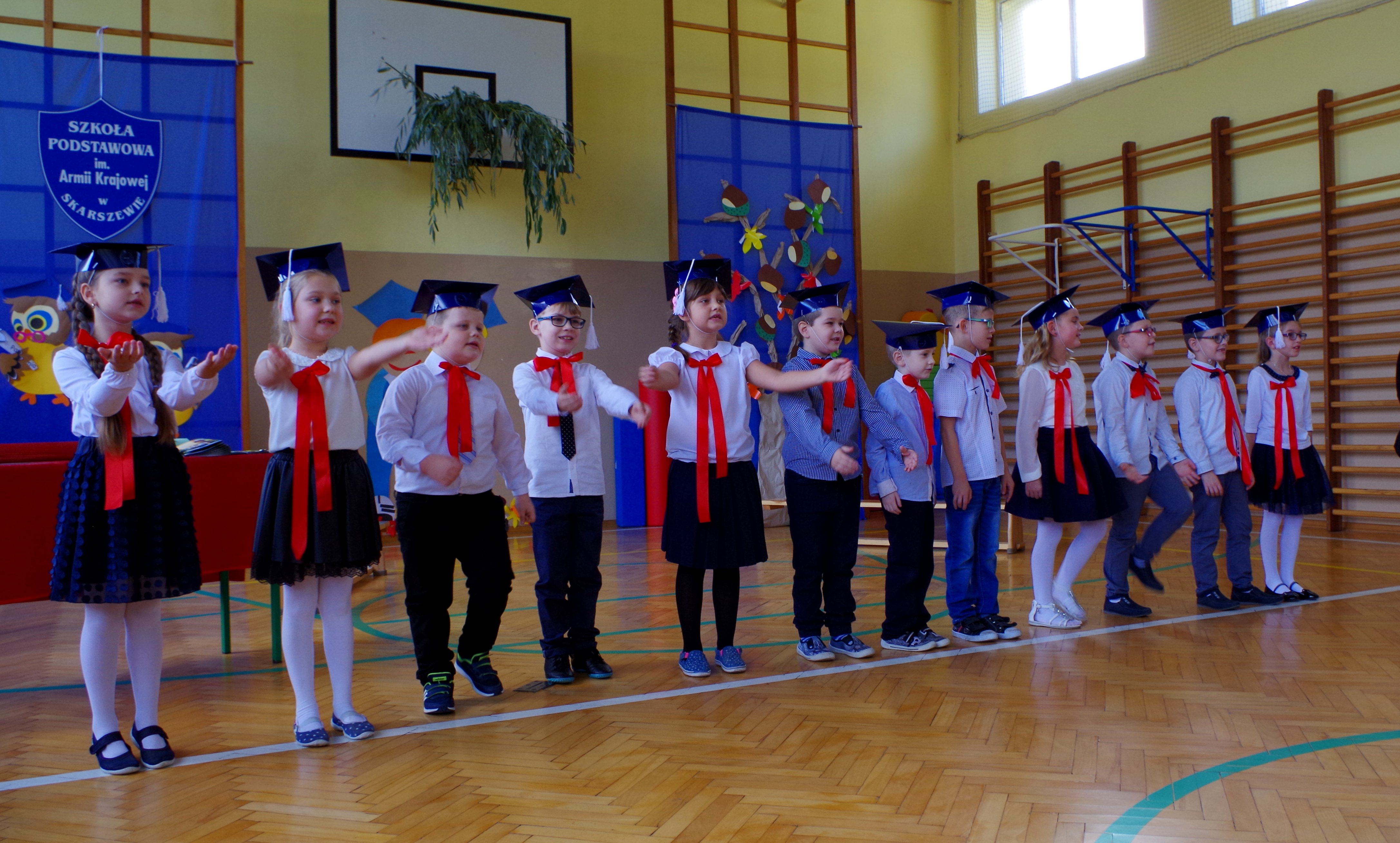 13 października 2017 roku odbyła się uroczystość ślubowania oraz pasowania na ucznia I klasy. W tym dniu uczniowie zostali włączeni w społeczność Szkoły Podstawowej im. Armii Krajowej w Skarszewie. Przygotowane przez dzieci przedstawienie ukazało ich talenty aktorskie i muzyczne. Dzieci z klasy IV przygotowały dla pierwszoklasistów test z wiedzy ogólnej. Młodsi koledzy bardzo dobrze sobie z nim poradziły, dzięki czemu mogły przystąpić do pasowania. Moment ten był bardzo wzniosły. Pierwszoklasiści obiecali być dobrymi uczniami i Polakami. Pani Dyrektor wręczyła pamiątkowe dyplomy, które dzieci stemplowały palcami. Uczniowie klasy drugiej wręczyli swoim młodszym kolegom drobne upominki. Część artystyczną przygotowała Pani Anna Balcerzyk. Uczniowie pamiętali również o zbliżającym się Dniu Nauczyciela. Poprzez złożone życzenia oraz drobne upominki wyrazili swoją pamięć o wychowawcach i wszystkich pracownikach szkoły.