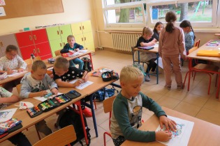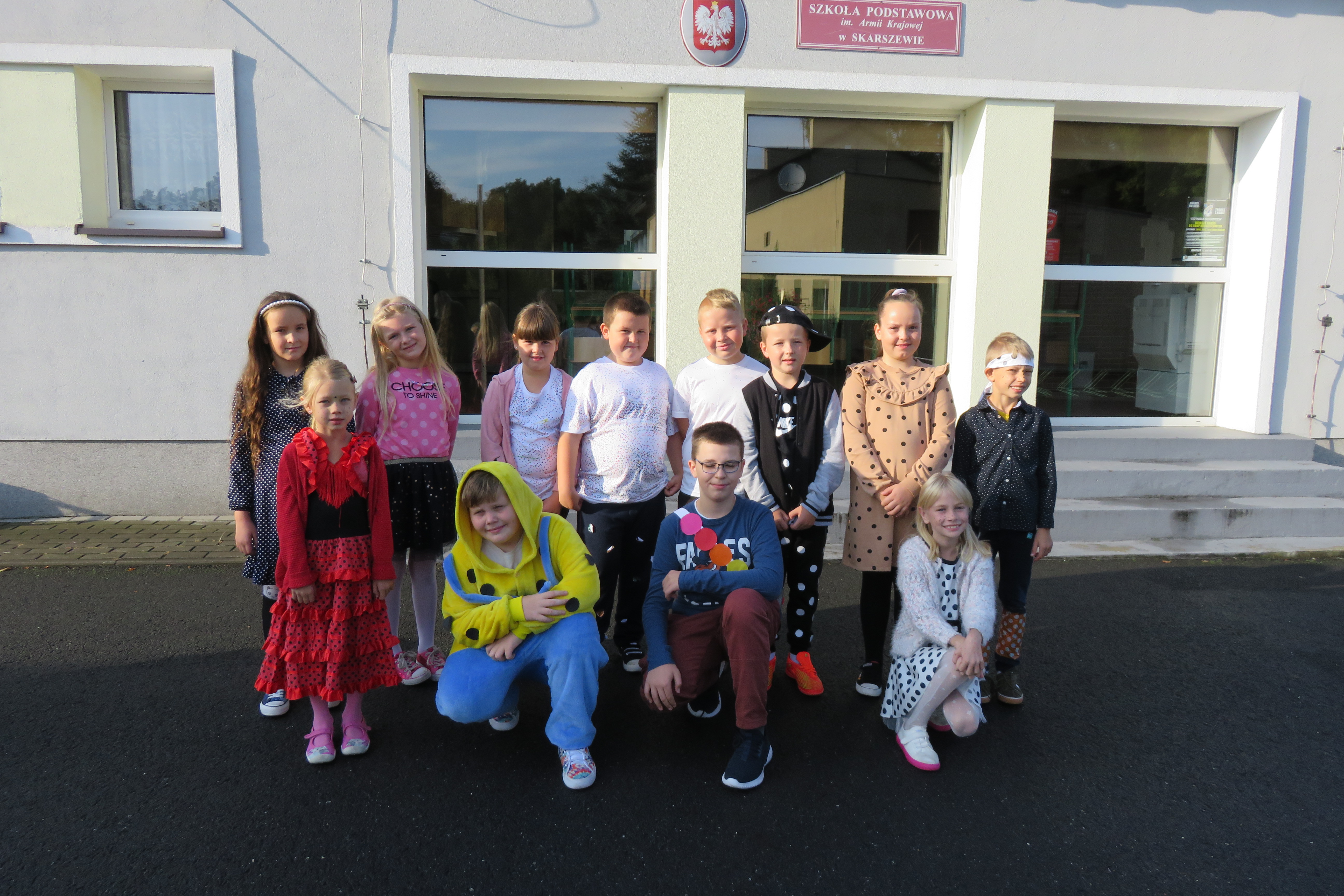 W dniu 15 września po raz kolejny obchodziliśmy w naszej szkole „International Dot Day” czyli Międzynarodowy Dzień Kropki – święto kreatywności i zabawy kolorami. Nauczyciele klas 0-3 przygotowali wiele ciekawych zabaw i aktywności, które pomogły dzieciom odkrywać ich talenty artystyczne i pobudziły wyobraźnię. Najmłodsi milusińscy rysowali „swój kropkowy świat” i dekorowali plac przed szkołą kolorową kredą. Klasy 1-3 wycinały „kropkowe drzewka” , malowały „kropkowe zwierzątka” i kolorowały „kropkową tęczę”. Uczniowie klasy 3 otrzymali nawet dyplomy, bo przecież każdy z nas ma w sobie ukryty talent. Starsi uczniowie klas 4-8 przebierali się w stroje w kropki, wszyscy dobrze się bawili. Dużą niespodzianką był „Mionionek” z kl. 6, który pojawił się tego dnia wśród nas.