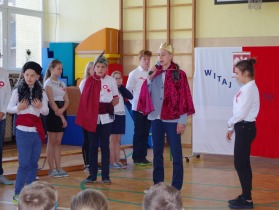 Przygotowany program artystyczny uczniowie zaprezentowali 30 kwietnia mieszkańcom Domu Pomocy Społecznej w Kaliszu. Spotkał się z bardzo ciepłym i życzliwym przyjęciem, podobnie jak kotyliony, przygotowane przez Szkolne Koło Wolontariatu.