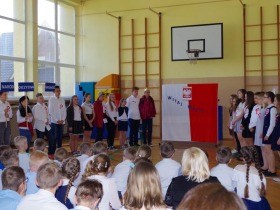 Po tym niezwykle podniosłym momencie nastąpiła równie uroczysta akademia. Uczniowie przypomnieli wydarzenia sprzed ponad 200 lat, pokazując, jak postępowym i nowoczesnym krajem była Rzeczpospolita. Pięknym recytacjom poezji patriotycznej towarzyszyły dźwięki piosenki „Witaj majowa jutrzenko!” oraz dekoracje, rekwizyty i stroje, które pomogły w zrozumieniu jakże ważnych, a zarazem trudnych treści.