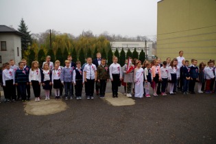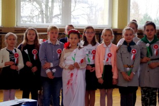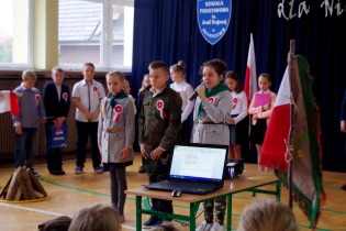 Na początku wszyscy odśpiewali Mazurka Dąbrowskiego podczas uroczystego wciągania flagi na maszt przez poczet flagowy. Następnie zaproszono uczniów i pracowników szkoły do przejścia na salę gimnastyczną, gdzie przywitano wszystkich uczestników obchodów i ponownie odśpiewano hymn w obecności pocztu sztandarowego. Akademię w tym roku przygotowali uczniowie klasy piątej, którzy recytowali wiersze i przypomnieli przemówienie Józefa Piłsudskiego z 1914 roku do żołnierzy Pierwszej Kompanii Kadrowej. Uwagę zwracała uczennica ubrana w białą szatę z biało-czerwonym wiankiem na głowie symbolizująca Polskę. Jednocześnie uczniowie poszczególnych klas przygotowali i odśpiewali pieśni żołnierskie, i tak: