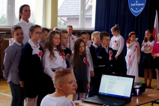 Dnia 9 listopada 2018 roku uczniowie naszej szkoły wzięli udział w uroczystej akademii z okazji rocznicy odzyskania przez Polskę niepodległości w 1918 r. Było to wyjątkowe święto, ponieważ upamiętniało setną rocznicę tego wydarzenia.
