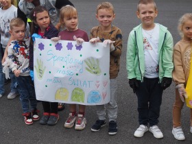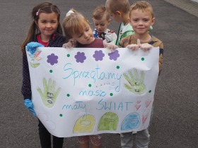 W poniedziałek 23 września uczniowie naszej szkoły ponownie przyłączyli się do Akcji Sprzątania Świata. Głównym jej celem jest rozbudzenie świadomości ekologicznej uczniów i odpowiedzialności za środowisko naturalne. Akcja ma również pokazać uczniom, że rozwiązaniem problemu zaśmieconego środowiska jest nie tylko coroczna zbiórka śmieci, ale przede wszystkim zmiana nawyków w codziennym życiu, segregacja i umiejętne gospodarowanie odpadami. Najmłodsi z nich, czyli dzieci z oddziału przedszkolnego oraz klasy pierwszej, drugiej i trzeciej ochoczo zabrali się za porządkowanie naszej najbliższej okolicy. Po pracy nastał upragniony odpoczynek. Przy przygotowanym ognisku z pieczonymi ziemniakami uczniowie spędzili czas na wspólnych rozmowach i zabawach.