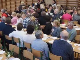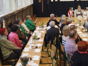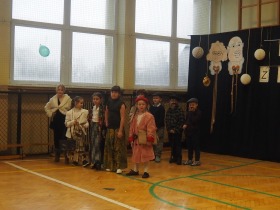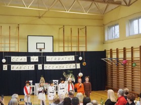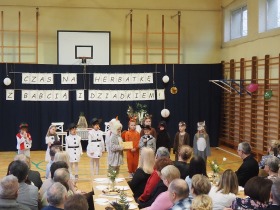 Życzyła długich lat życia, zdrowia, miłości szacunku, wspomniała także o cennym doświadczeniu i życiowej mądrości seniorów. Dzieci z oddziału przedszkolnego pod czujnym okiem Pani Edyty Waszak z wielkim przejęciem prezentowały skecz „Od dzieciństwa, do dorosłości”. Najmłodsze dzieci wywołały fale wzruszeń i lawinę śmiechu. Pierwszoklasiści przygotowani przez Panią Annę Balcerzyk wystąpili w inscenizacji pt: „Smutny bałwanek”.