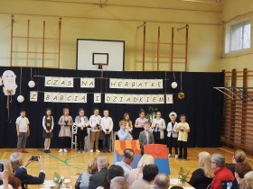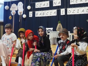 Pani Agnieszka Janczak przygotowała z klasą II ważne wiadomości na temat Babć i Dzidków. Zostały one opracowane i przedstawione w uroczym koncercie życzeń, prowadzonym przez profesjonalny duet – Krystynę i Jana.