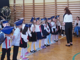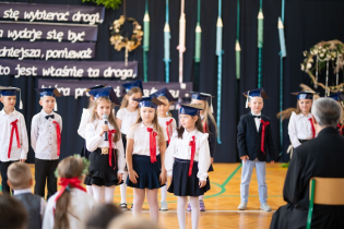 W niezwykle podniosłej atmosferze, w obecności pocztu sztandarowego, uczniowie ślubowali być dobrymi Polakami, godnie reprezentować swoją szkołę, swym zachowaniem i nauką sprawiać radość rodzicom i nauczycielom.