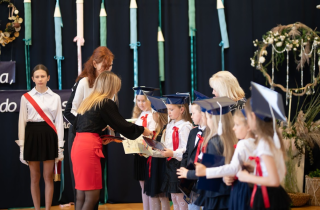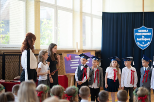 Następnie przedszkolaki, przygotowane przez swoją wychowawczynią p. Edytę Waszak, zaprezentowały swoje umiejętności wokalne, recytatorskie i taneczne. Mimo stresu związanego z publicznym występem, dzieci świetnie poradziły sobie z mikrofonem. Dyrektor szkoły dr Dorota Sobczak dokonała uroczystego pasowania i tym samym przyjęła wszystkie dzieci do społeczności przedszkolnej. Na pamiątkę tak ważnego wydarzenia każde dziecko otrzymało pamiątkowy dyplom.