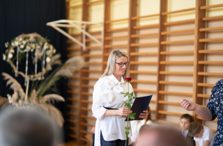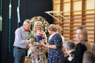Następnym ważnym wydarzeniem tej uroczystości było wręczenie przez dyrektora szkoły dr Dorotę Sobczak nagród wyróżniającym się nauczycielkom: pani Edycie Waszak i pani Marcie Czerkawskiej oraz pracownikowi obsługi szkoły panu Krzysztofowi Błaszczyńskiemu.
