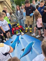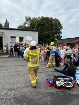 Strażacy przeprowadzili także pokaz udzielania pierwszej pomocy przedmedycznej. Uczniowie dowiedzieli się, jak prawidłowo wezwać pomoc, jak sprawdzić podstawowe funkcje życiowe oraz jak rozpocząć resuscytację krążeniowo-oddechową. Takie umiejętności mogą w przyszłości okazać się bezcenne, ponieważ odpowiednia reakcja świadka zdarzenia często ratuje ludzkie życie.
