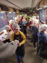 15 grudnia przyjechał do naszej szkoły "Czekoladowy Autobus" . Dzieci z Oddziału Przedszkolnego oraz uczniowie klas I-III z niecierpliwością czekali, aby wejść do niezwykłego pojazdu i uczestniczyć w niecodziennych warsztatach. Podczas spotkania w Czekoladowym Autobusie zapoznano nas z historią czekolady. Zmysł smaku i węchu w tym dniu był szczególnie aktywny. Warsztaty były dopasowane do potrzeb i wieku dzieci, dzięki temu spotkanie było wyjątkowe i niezapomniane. Najciekawszym momentem warsztatów było, gdy przebrane w fartuszki i czapeczki dzieci, zamieniły się w prawdziwych cukierników i zaczęły tworzyć… swoje wymarzone czekoladki i słodkie obrazki. Co ważne, do zajęć wykorzystana była wysokiej klasy czekolada znakomitej jakości. Dzięki warsztatom Czekoladowego Autobusu każde uczestniczące w nich dziecko miało miłą i niepowtarzalną okazję, by między innymi: poznać wiele ciekawostek na temat czekolady, degustować 3 różne rodzaje czekolady, zachować po spotkaniu miłe pamiątki w postaci stworzonych przez siebie czekoladowych modeli w pamiątkowym logowanym pudełeczku. Każdy uczestnik warsztatów otrzymał dyplom Mistrza Czekolady. Dziękujemy za przybycie i osłodzenie nam tego zimowego dnia! To był naprawdę super dzień!