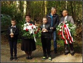 Kolejnym punktem uroczystości było składanie kwiatów i zapalanie zniczy w Miejscu Pamięci w lesie w Skarszewie. W uroczystości udział wzięli: dyrekcja, nauczyciele, wszyscy uczniowie i pracownicy szkoły. Przybyli również goście, którzy swoją obecnością, uświetnili wydarzenie. Minuta ciszy, krótka historia Armii Krajowej, zapalone znicze, wiązanki kwiatów i wspólne odśpiewanie hymnu państwowego, dodały uroczystości wyjątkowego charakteru.