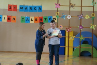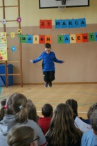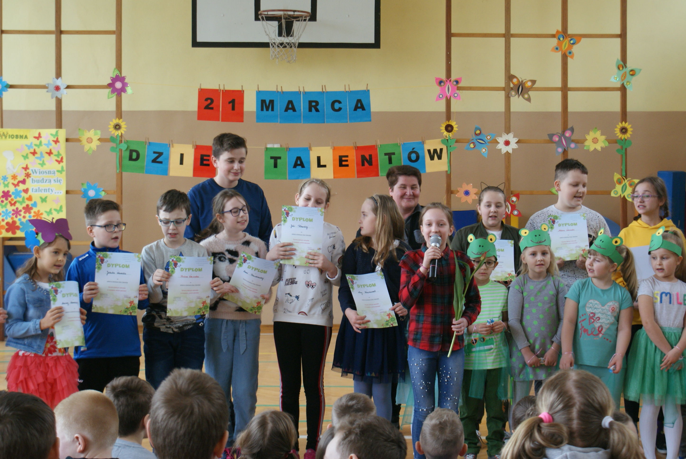 Uczniowie mogli podziwiać koleżanki i kolegów, którzy wzięli udział w imprezie. Na scenie zaprezentowało swoje niezwykłe umiejętności kilkunastu młodych artystów – uczniowie klas I-VI oraz dzieci z oddziału przedszkolnego. Byli wśród nich piosenkarze, plastycy, muzycy, recytatorzy, tancerze oraz sportowcy. Troje uczniów zaprezentowało swoje pasje: fotografię, ogrodnictwo i jazdę konną. Wszystkie występy wzbudzały gorący aplauz widowni, która dzielnie wspierała swoich idoli oraz z zaciekawieniem i radością obserwowała prezentację ich talentów.