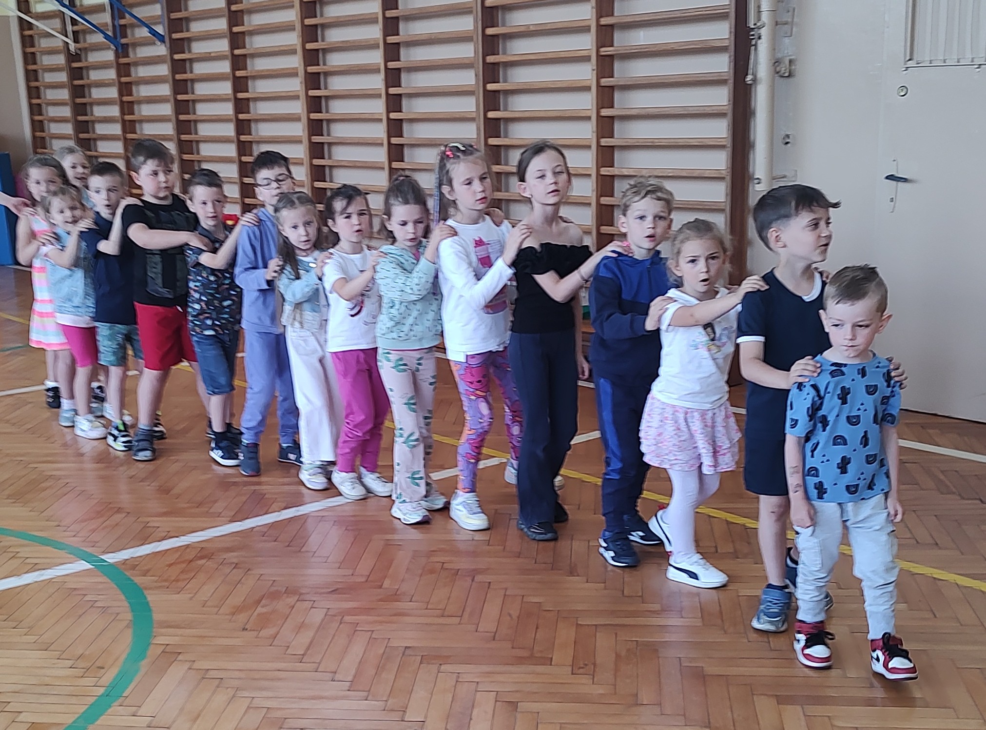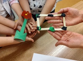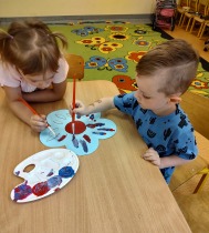 W czwartek (16.05.2024r. ) odbył się w naszej szkole Dzień Otwarty. Kandydaci do oddziału przedszkolnego oraz klasy I wraz z rodzicami mieli możliwość poznania naszej szkoły. Pani dyrektor przywitała zaproszonych gości i mocno trzymała kciuki za wszystkie dzieci, by pomyślnie rozwiązywały zadania, zagadki oraz odczuwały radość ze spotkania. W ramach integracji Pani Edyta Waszak oraz Pani Marta Czerkawska zaproponowały gimnastykę z wykorzystaniem ciekawych rekwizytów. Kandydaci do oddziału przedszkolnego rewelacyjnie poradzili sobie z zadaniami plastycznymi pt: "Gąsienica" oraz "Kwiaty na łące". Zabawa z chustą animacyjną wywołała falę radości. Maluszki zastanawiały się ile kropek ma biedronka? Na szczęście zabawa matematyczna pomogła w rozwiązaniu zagadki. Przyszli pierwszoklasiści zajęcia w klasie rozpoczęli od poznania swoich imion oraz opowiedzenia co lubią robić najchętniej. Następnie wspólnie z Panią Martą ustalili z czym kojarzy się wiosna. Po ekspresji słownej przyszedł czas na pracę plastyczną. Przy dźwiękach utworu pt. "Wiosna" Antonio Vivaldi, dzieci malowały kwiaty. Kolejna zabawa z figurami geometrycznymi, to był strzał w dziesiątkę. Dzieci samodzielnie budowały przestrzenne trójkąty, kwadraty i prostokąty. Następnie, przyszłe pierwszaki stworzyły swoje własne liczydełko - wężyka matematycznego. To był dzień z mnóstwem wrażeń dla wszystkich uczestników spotkania. Mamy nadzieję, że przyszłym uczniom i ich Rodzicom podobała się nasza szkoła i we wrześniu spotkamy się na uroczystym rozpoczęciu nowego roku szkolnego.