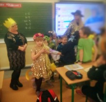 W dniu 14 listopada nasza szkoła zamieniła się w magiczną krainę, pełną bajkowych postaci z okazji obchodów Dnia Postaci z Bajek. Szkolne korytarze zamieniły się w zaczarowaną krainę pełną fantazji i uśmiechu. Dzieci z oddziału przedszkolnego oraz klas 1-3 z dumą prezentowały swoje kreatywne stroje, od klasycznych postaci, jak Czerwony Kapturek, przez księżniczki i rycerzy, po współczesnych superbohaterów, np. Spider-Mana. Dlaczego warto świętować Dzień Postaci z Bajek? To doskonała okazja do promowania czytelnictwa i zachęcania dzieci do sięgania po książki. W tym dniu pierwszoklasiści otrzymali książki w ramach kampanii " Mała książka- wielki człowiek". Jest to zaproszenie pierwszoklasistów do odbycia niezwykłej przygody, jaką jest umiejętność rozpoznawania liter, składania ich w wyrazy i zdania, a w końcu przyjemność czerpania z lektury wspólnie z dorosłymi lub samodzielnie. Co ważne, badania udowodniły, że dzieci regularnie czytające dla przyjemności mają większe szanse niż inni uczniowie na skuteczną naukę i osiąganie dobrych wyników w szkole. Czytanie wzbogaca słownictwo, rozwija umiejętność swobodnego myślenia i wypowiadania się na różne tematy. Szkolny samorząd wspólnie z Panią bibliotekarką przygotowali tym dniu niespodzianki dla najmłodszych i zachęcali do sięgania po lektury. Dzieci otrzymały odznaki z okazji Dnia Postaci z Bajek, kolorowanki oraz zapoznały się ze znanymi bajkowymi cytatami. To był fajny dzień z magiczną atmosferą, która pozwoliła nam na chwilę przenieść się do świata wyobraźni!