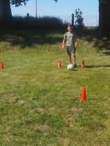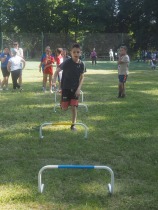 Pozostali uczniowie z klas IV-VII na boisku szkolnym zmagali się z pokonaniem sprawnościowych torów przeszkód.