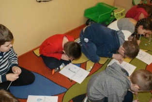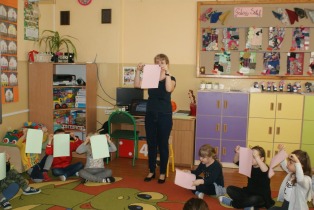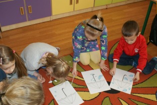 Zadania miały na celu ćwiczenie aparatów artykulacyjnych: warg i języka. Dzieci pracowały tez nad prawidłowym torem oddechowym. Dmuchając na kartki papieru sprawdzały, czy prawidłowo oddychają. Słuchając opowiadania „Sowa sprząta swoje mieszkanie”, dokładnie usprawniliśmy swoje buzie. Rozluźnieni i przygotowani do pięknej wymowy przystąpiliśmy do dalszej części zajęć, w której ćwiczenia artykulacyjne zostały połączone z zajęciami logorytmicznymi. Uczniowie maszerowali w takt piosenki „Ludowa poleczka”, pamiętając