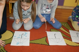W Trakcie zabaw mieliśmy możliwość sprawdzenia swojego słuchu. Dzieci odgadywały skąd pochodzą dźwięki, które usłyszały. Wszyscy świetnie poradzili sobie z tym zadaniem. Na zakończenie jeszcze raz sprawdziliśmy czy potrafimy prawidłowo oddychać. Dzieci otrzymały słomki i za ich pomocą musiały przenieść krople deszczu pod parasol. Przy tym zadaniu było mnóstwo śmiechu. Wszyscy bardzo dobrze sobie z nim poradzili.