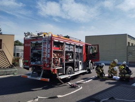 W miniony piątek w naszej szkole rozległ się alarm ewakuacyjny. Uczniowie wraz z nauczycielami i pozostałymi pracownikami szkoły opuścili budynek szkoły i udali się na miejsce zbiórki. Nauczyciele przekazali p. dyrektor Dorocie Sobczak, prowadzącej akcję ewakuacyjną, informacje dotyczące stanu liczebności klas. Meldunek został następnie przekazany druhowi Bartoszowi Waszakowi dowodzącemu akcją. Gdy okazało się, że w budynku pozostał 1 ranny uczeń, strażacy rozpoczęli akcję ratunkową, a następnie zabezpieczanie rannego ucznia. Zastęp OSP Skarszew w składzie: Tomasz Karpisiewicz, Kacper Kmieć, Bartosz Waszak, Magdalena Żarnecka, Tomasz Żarnecki błyskawicznie i profesjonalnie opanował sytuację i udzielił pomocy rannemu uczniowi. Wszyscy odetchnęli z ulgą, a dzielni strażacy zostali nagrodzeni brawami. Po tych emocjach uczniowie mieli okazję zapoznać się z możliwościami nowego ciężkiego samochodu ratowniczo-gaśniczego OSP Skarszew oraz przyjrzeć się pracy strażaków.