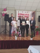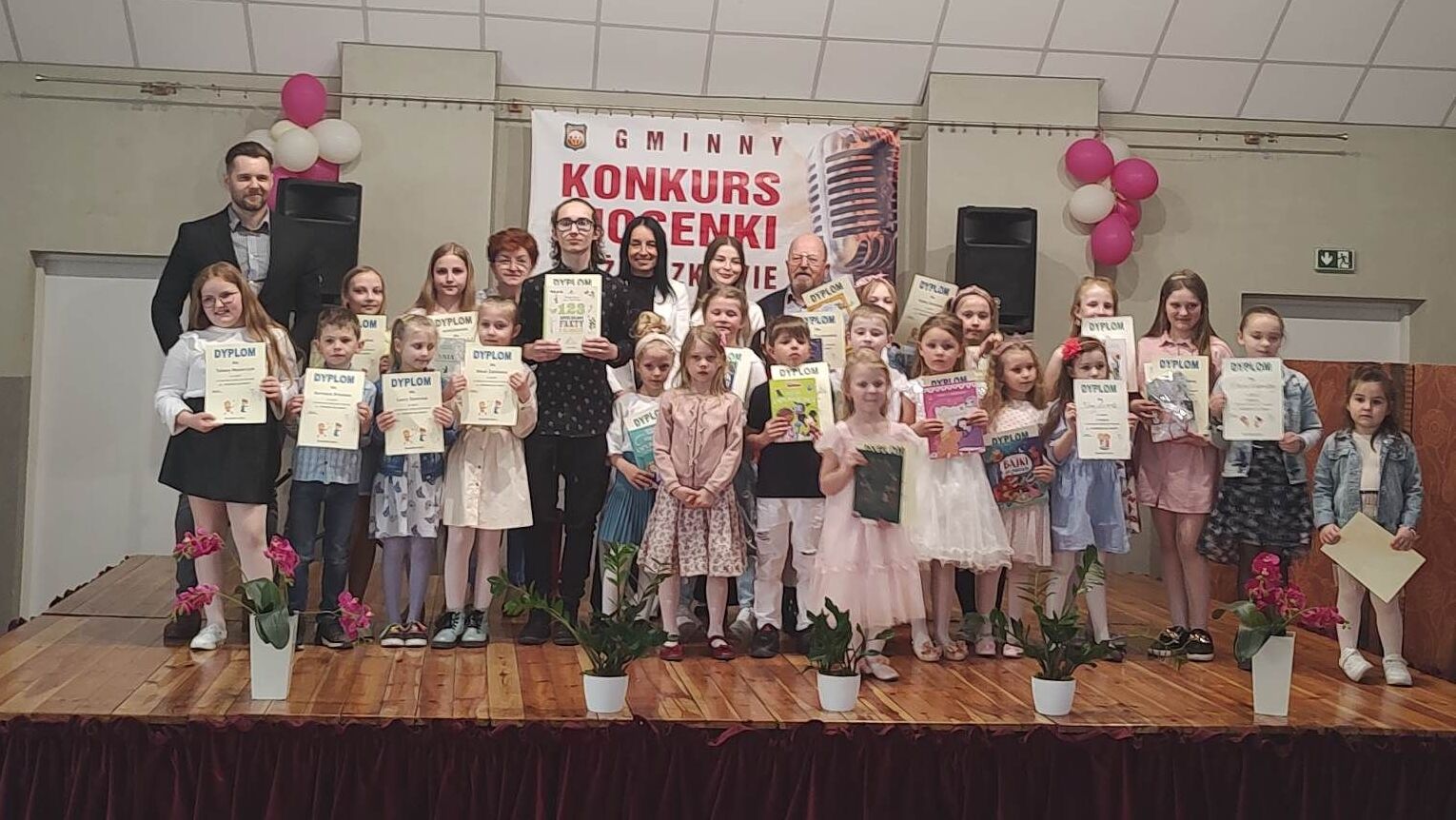 Dnia 26. 04.2023 nasi uczniowie w składzie: Lena Olszewska, Inga Tresenberg, Pola Karpisiewicz (Oddział Przedszkolny), Bartłomiej Waszak (kl.2) oraz Marta Grzelak (kl.4) reprezentowali naszą placówkę na Gminnym Konkursie pt: "Piosenka dla Mamy" organizowanym przez Gminny Ośrodek Kultury w Żelazkowie. Występy oceniane były przez wykwalifikowane jury. Naszym reprezentantom towarzyszyła Pani Edyta Waszak, wsparciem byli również rodzice, którzy ze wzruszeniem oglądali występy swoich dzieci. Gratulujemy wszystkim uczestnikom a w szczególności laureatom! W kategorii przedszkolaków: 2 miejsce zajęła Lena Olszewska. W kategorii klas I-III szkół podstawowych: 2 miejsce zajął Bartłomiej Waszak. W kategorii klas IV-VI szkół podstawowych: wyróżnienie otrzymała Marta Grzelak . Życzymy dalszych sukcesów muzycznych. Uczestnicy otrzymali nagrody rzeczowe z rąk Wójta Gminy Żelazków Pana Michała Kraszkiewicza. Nagrodzeni i wyróżnieni uczniowie będą mieli zaszczyt wystąpić na festynie z okazji Dnia Dziecka w Żelazkowie.