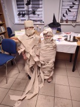 1 grudnia dzieci z Oddziału Przedszkolnego uczestniczyły w magicznych zabawach andrzejkowych w filii bibliotecznej w Skarszewie. Pani bibliotekarka Anna Popiołek przygotowała wiele radosnych zabaw i wróżb, dzięki którym dzieci mogły poznać swoją bliższą i dalszą przyszłość. Nie zabrakło ustawiania bucików, przekłuwania serduszek z imionami, wróżenia za pomocą wirującej butelki, kodowanek itp. Wróżby przeplatane były tańcami oraz zabawami przy skocznej muzyce. Dużym zainteresowaniem cieszył się taniec z balonami. Pod koniec zabawy przedszkolaki raczyły się słodkim poczęstunkiem. Zabawa była przednia, dzieci wróciły do szkoły w doskonałych humorach. Bogatsze o znajomość swojej przyszłości 😉