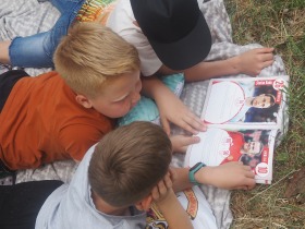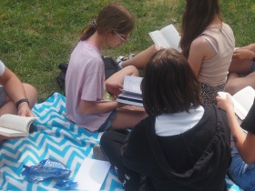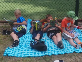 Tegoroczne czytanie w naszej szkole odbyło się na świeżym powietrzu, w formie relaksującego pikniku. Każdy z uczestników czytał przyniesioną swoją ulubioną książkę. Stworzyło to również możliwość rozmowy na temat literatury oraz zaprezentowania rówieśnikom wybranych lektur. Akcja wszystkim bardzo się spodobała, na pewno powtórzymy za rok. Poniżej krótka fotorelacja z tego wydarzenia.