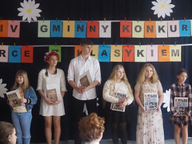 Amerykański poeta Robert Frost powiedział kiedyś, że: „Poezja jest wtedy, gdy emocje znajdują swoje myśli, a myśli znajdują swoje słowa”. Doświadczyliśmy tego na pewno będąc świadkami już IV Gminnego Konkursu Recytatorsko-Inscenizatorskiego „Harce z klasykiem”, który odbył się w naszej szkole 25.04.2023 roku. Podobnie jak w zeszłym, tak i w tym roku swoją obecnością zaszczyciło nas szanowne jury, w którego skład weszli: pani Barbara Nowak, pani Anna Popiołek oraz pan Lech Wierzbowski. Patronat nad konkursem objęła Pani Dyrektor Dorota Sobczak. Tym razem piętnastu młodych artystów zaprezentowało swój kunszt recytatorski oraz aktorski, wybierając utwory z kanonu takich poetów jak: Adam Mickiewicz, Adam Asnyk, Juliusz Słowacki, Wisława Szymborska, Jan Brzechwa czy Julian Tuwim. Ponadto uczniowie uatrakcyjnili swoje występy różnymi rekwizytami oraz odpowiednio dobranymi strojami. Niektóre wykonania były ekspresyjne, żywiołowe, inne natomiast pełne liryzmu – wszystkie wszakże wywoływały poruszenie i tworzyły niezwykły nastrój. Wśród wyróżnionych uczniów była Joanna Kaczmarek ze Szkoły Podstawowej w Żelazkowie, która wyrecytowała wiersz J. Tuwima „Spóźniony słowik” i swym bogatym w emocje wykonaniem zwróciła na siebie uwagę jury. Kolejną osobą była Viktoria Długiewicz ze Szkoły Podstawowej w Dębem, wykonująca z opanowaniem i świetną dykcją wiersz A. Mickiewicza „Przyjaciele”. Trzecią wyróżnioną osobą była Oliwia Gajewska ze Szkoły Podstawowej w Kokaninie, która z wdziękiem zaprezentowała się w utworze J. Tuwima „Dwa wiatry”. Pierwsze miejsce zajęła Julia Osiewała ze Szkoły Podstawowej w Skarszewie. Uczennica w sposób fenomenalny odegrała aktorsko rolę sympatycznego leniuszka siedzącego na kanapie, ukazując swój warsztat artystyczny w wierszu J. Brzechwy „Leń”. Drugie miejsce zdobyła Zuzanna Kurczbuch ze Szkoły Podstawowej w Skarszewie. Zwróciła ona uwagę strojem, nawiązującym do symboli ojczystych i swym pełnym tęsknoty i nostalgii występem przekonała do siebie arbitrów, wykonując wiersz J. Słowackiego „Hymn o zachodzie słońca na morzu”. Trzecie natomiast miejsce zajął Antoni Andrzejewski ze Szkoły Podstawowej w Skarszewie, który w brawurowy sposób wyrecytował wiersz miłosny A. Asnyka „Między nami nic nie było”. Wszyscy uczestnicy konkursu otrzymali dyplomy oraz nagrody książkowe. Młodym artystom serdecznie gratulujemy i życzymy dalszych sukcesów w kolejnych edycjach konkursu, ponieważ jak powiedział Witold Gombrowicz: „Wielka poezja, będąc wielką i będąc poezją, nie może nie zachwycać nas, a więc zachwyca”.