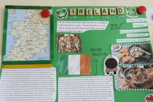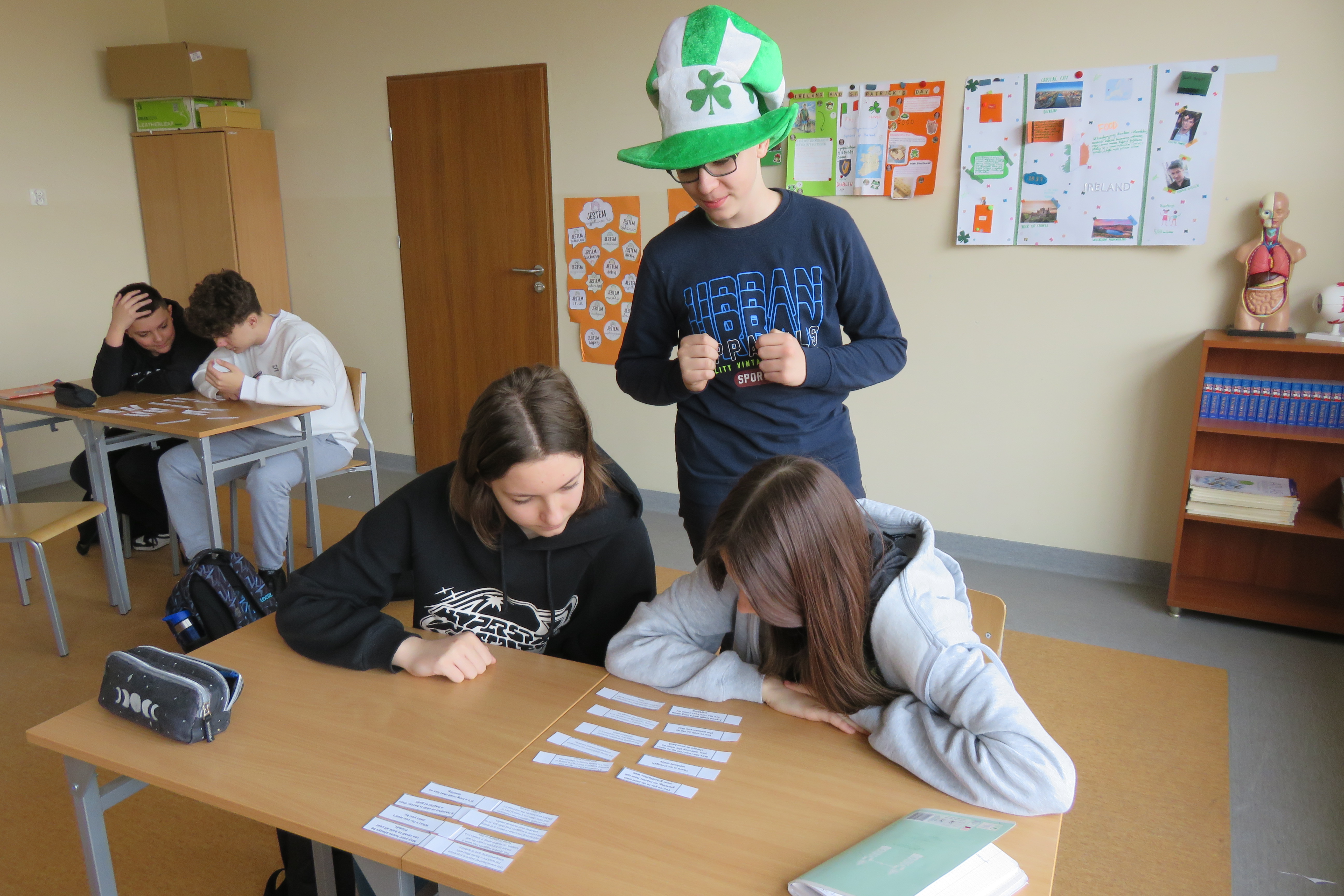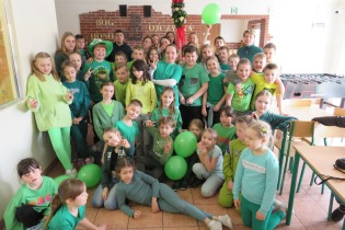 Od 18 do 22 marca realizowaliśmy w naszej szkole ogólnopolski projekt edukacyjny pt. " Let’s go green" , którego celem było zapoznanie uczniów z obyczajami i tradycjami Irlandii oraz obchodami święta Św. Patryka . Projekt realizowany był głównie na lekcjach j. angielskiego w klasy I-III oraz IV-VIII. Najmłodsi oglądali filmiki kulturoznawcze, kolorowali symbole związane z Irlandią i próbowali zatańczyć taniec irlandzki. Oj, nie było łatwo! Klasy IV- VIII oglądali prezentację o Irlandii w j. angielskim, rozwiązywali łamigłówki i quizy kulturoznawcze, dopasowywali irlandzkie powiedzenia do ich tłumaczeń i słuchali języka irlandzkiego oraz hymnu Irlandii. Korzystając z kodów QR oglądali filmiki o tradycyjnym tańcu i paradach związanych z Dniem Św. Patryka. Starsi uczniowie - ochotnicy wykonali kolorowe plakaty tematyczne oraz prace graficzno-językowe. Na korytarzu pojawiła się girlanda z kolorowanek i prac uczniów z klasy I-III oraz gazetka tematyczna poświęcona faktom z życia Świętego Patryka i ciekawostkom na temat Irlandii w języku angielskim. W piątek ( tzn. 22 marca ) wszyscy uczniowie ubrali się na zielono, aby w ten sposób podsumować projekt ( będący częścią innowacji pedagogicznej realizowanej w naszej szkole). Było dużo pozytywnych emocji i zabawy!