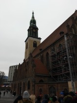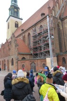 Zwiedzanie  Berlina z przewodnikiem rozpoczęliśmy od placu Aleksandra, na którym stoi najwyższy w Unii Europejskiej budynek: wieża telewizyjna z obrotową kawiarnią, Następnie przeszliśmy pod Czerwony Ratusz, potem posłuchaliśmy wiadomości o Kościele Mariackim, który jest najstarszym czynnym kościołem w Niemczech, przechodziliśmy "Aleją Pod Lipami".  Kilkakrotnie przekraczaliśmy  mosty na rzece Sprewa, byliśmy na wyspie muzeów   oraz przy pomniku  ku pamięci matek synów poległych podczas