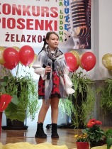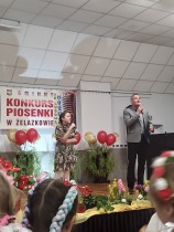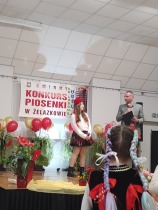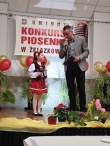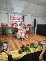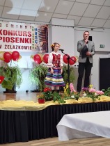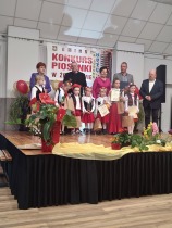 W piątek 11.04. 2025r. wybrane na drodze eliminacji szkolnych, uczennice klas 0 ( Adrianna Płuciennik, Helena Waszak, Nina Wałęsiak), I (Zuzanna Siuda) , II (Maja Sowińska , Lena Olszewska) oraz IV ( Barbara Kurczbuch, Pola Gabrysiak, Martyna Janicka) wzięły udział w Gminnym Konkursie Piosenki "Na ludową nutę". Dziewczynki godnie reprezentowały naszą szkołę. Uczennice ukazały bogactwo polskiej muzyki ludowej w formie prezentacji wokalnej. Dzięki pięknym, pomysłowym i barwnym strojom miło się słuchało, ale również oglądało występy. Na widowni kciuki trzymali rodzice oraz Pani Edyta Waszak. Konkurs cieszył się dużym zainteresowaniem, jury miała naprawdę ciężką decyzję, by zdecydować, kto wygra. Adrianna Płuciennik z klasy 0 zajęła III miejsce ( w kategorii - przedszkolaki). Maja Sowińska uczennica klasy II otrzymała I wyróżnienie ( w kategorii- uczniowie klas I-III szkół podstawowych). Gratulujemy i życzymy dalszych sukcesów. Wszyscy uczestnicy otrzymali dyplomy uczestnictwa oraz upominki. Laureaci otrzymali dyplomy i nagrody oraz zaprezentują swoje utwory na festynie z okazji " Dnia dziecka" oraz na Gminnych Dożynkach. Bardzo się cieszymy, że "Ludowa nuta" przypadła do gustu naszym uczennicom.