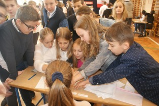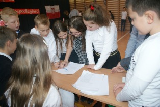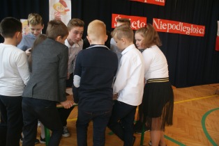 Uczniowie krótko przedstawili historię odzyskania przez Polskę niepodległości i zaprosili wszystkie klasy do rozwiązania quizu niepodległościowego, który zawierał 9 zadań. Mieli za zadanie m. in. odgadnąć tytuły polskich piosenek, umieścić na mapie miasta Polski, dopasować zdjęcia bohaterów historycznych do krótkich opisów, stworzyć z puzzli postać Józefa Piłsudskiego, ułożyć wiersz Kto ty jesteś, Polak mały czy dopasować przysłowia. Duże zainteresowanie wzbudziło rozwiązywanie zagadek o Polsce.
