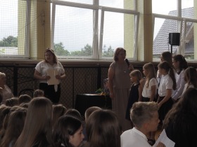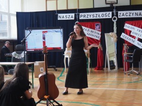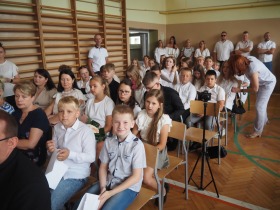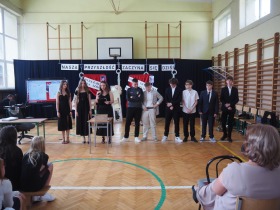 Podczas uroczystości wystąpili również przedstawiciele szkolnego chóru w wakacyjnej piosence, która wprowadziła wszystkich w letni nastrój i była symbolicznym zaproszeniem do odpoczynku i wakacyjnego relaksu.