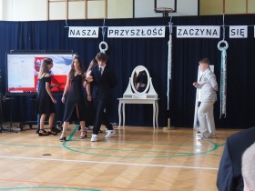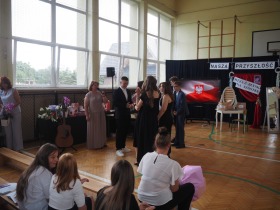 Szczególnie ciepło przyjęte zostały scenki, w których ósmoklasiści w sposób humorystyczny zaprezentowali wizję swoich przyszłych zawodów. Wystąpili m.in. jako: wizażystka, fryzjerka, wokalistka z gitarą, biznesmen, komornik, mechanik samochodowy, informatyk-programista, podróżnik oraz trener. Kreatywne występy i pełna dystansu, humoru i uśmiechu gra aktorska uczniów zostały przyjęte entuzjastycznie przez publiczność. Scenkom towarzyszyły starannie dobrane fragmenty utworów muzycznych, które podkreślały ich charakter i dodawały występom dynamiki. Aktorskie talenty zostały nagrodzone gromkimi brawami i wyrazami uznania za trud włożony w przygotowanie występów.