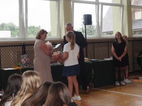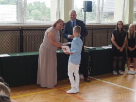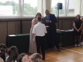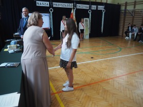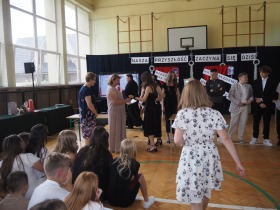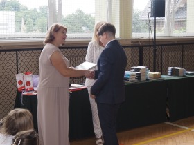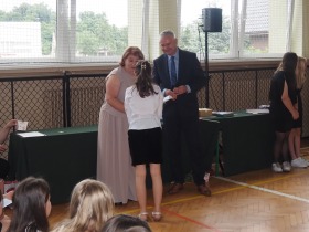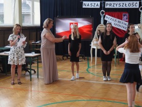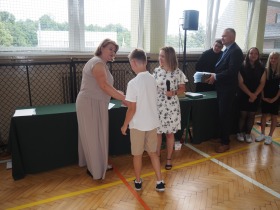 W trakcie uroczystości Pani Dyrektor wraz z wychowawcami poszczególnych klas wręczyła świadectwa z wyróżnieniem uczniom klas 4–8, a także nagrody za szczególne osiągnięcia sportowe, przyznane ósmoklasistom. Nie zabrakło również podziękowań dla wolontariuszy działających w ramach szkolnych inicjatyw – wśród nich znaleźli się uczniowie klas 4–8. Ich postawa to powód do dumy dla całej społeczności szkoły.