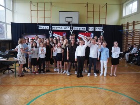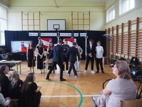Wspólnie odśpiewaliśmy też hymn państwowy, a na tablicy multimedialnej pojawiła się powiewająca flaga Polski, podkreślająca rangę tego momentu.