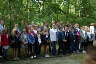 Druga część uroczystości odbyła się w Lesie Skarszewskim, przy pomniku 56 obywateli polskich – wśród nich członków Armii Krajowej, rozstrzelanych w dniu 19 stycznia 1945 r. Pani Dyrektor oraz przedstawiciele Rodziców i Uczniów złożyli kwiaty oraz zapalili znicze pamięci. Oddaliśmy również hołd zamordowanym patriotom zapalając znicze na Cmentarzu Tynieckim.
