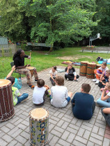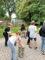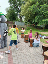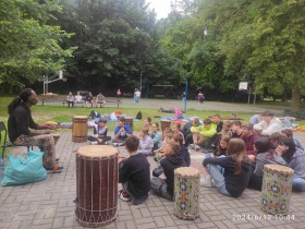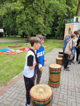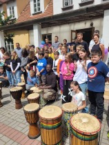 12 czerwca uczniowie klasy piątej mieli przyjemność wziąć udział w pikniku połączonym z warsztatami bębniarskimi, które poprowadził mistrz w sztuce gry na bębnach, znakomity artysta afrykański, Gaspard Conde. Sami też mieli przyjemność pograć na afrykańskich bębnach i pośpiewać z muzykiem. Dzieciaki przywitał również przyjaciel dzieci król Julian. Atmosfera była pełna radości i uśmiechów, a cały dzień obfitował w niezapomniane chwile. Uczniowie pograli w piłkę, zjedli przepyszne lody i drożdżówki. Ponadto mogli też poznać lub spotkać się z koleżanki i kolegami z innej szkoły na terenie gminy Żelazków. To było udane przedpołudnie dzięki pomocy rodzicom, którzy dowieźli swoje pociechy do Szkoły Podstawowej w Biernatkach. Dziękuję bardzo za pomoc.