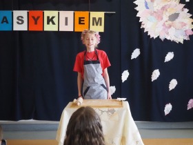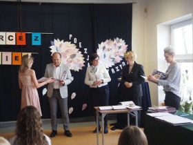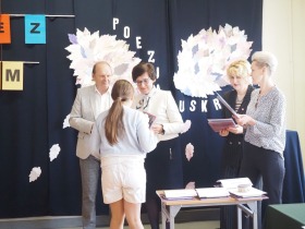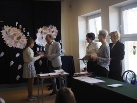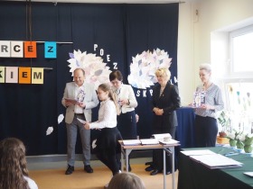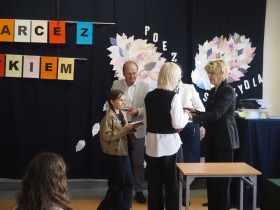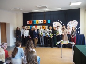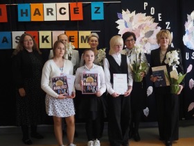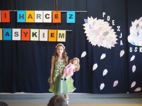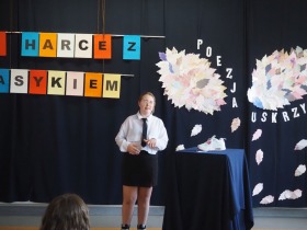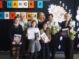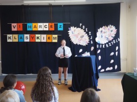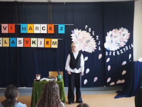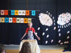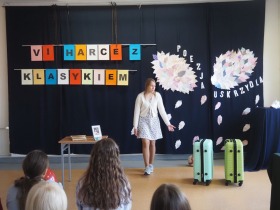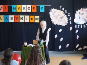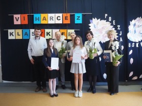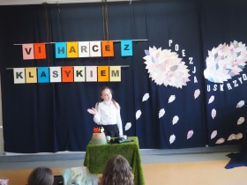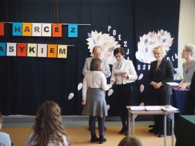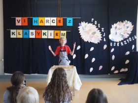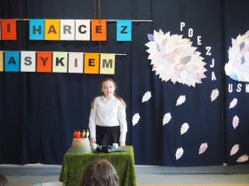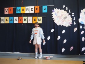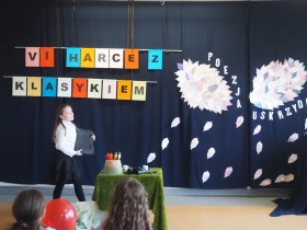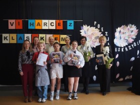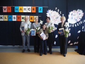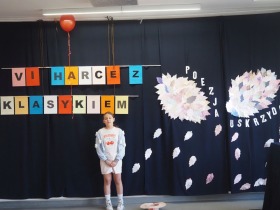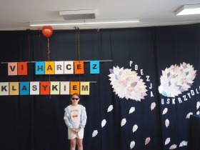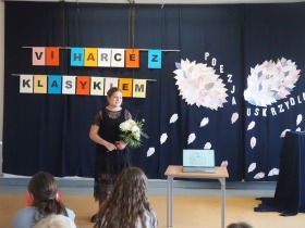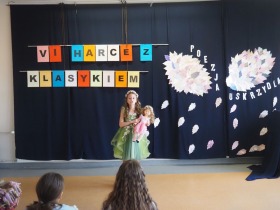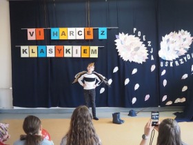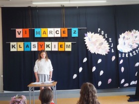 „Poezja uskrzydla” – te słowa stanowiły motto szóstej odsłony Międzyszkolnego Konkursu Recytatorsko-Inscenizatorskiego „Harce z klasykiem”, który odbył się w naszej szkole dnia 08.04.2025 roku. Celem wydarzenia było odkrywanie i promowanie talentów recytatorskich i aktorskich, a także rozbudzanie wrażliwości na piękno poezji oraz upowszechnianie kultury żywego słowa. W tym roku mieliśmy okazję podziwiać aż 18 młodych artystów. Natomiast skład komisji konkursowej zasilili: Pani Alicja Łuczak – polityk, działaczka samorządowa i nauczycielka, posłanka na Sejm X kadencji; Pani Barbara Nowak – wieloletni doradca metodyczny i polonista; Pani Anna Popiołek – pracownik biblioteki gminnej Gminy Żelazków oraz Pan Lech Wierzbowski – zasłużony aktor Teatru im. Wojciecha Bogusławskiego w Kaliszu. Patronat nad konkursem objęła Pani Dyrektor Dorota Sobczak. Uczniowie zachwycili interpretacją wierszy klasyków, a także opanowaniem pamięciowym utworów oraz elementami inscenizatorskimi takimi jak: gest sceniczny, strój, rekwizyt. Trzeba przyznać, że szanowne jury nie miało łatwego zadania, ponieważ uczniowie prezentowali wysoki i wyrównany poziom. Ostatecznie po naradach poznaliśmy werdykt. Pierwsze miejsce zajęła Oliwia Żarnecka (Szkoła Podstawowa im. Armii Krajowej w Skarszewie), która z dużą dozą humoru i emocji wcieliła się w panią słowikową, czekającą na swego męża w utworze J. Tuwima „Spóźniony słowik”. Drugie miejsce przyznano ex aequo Antoninie Kurdyk (Szkoła Podstawowa im. Św. Jana Pawła II w Dębem), która swoimi „przechwałkami” podbiła serca jury w wierszu J. Brzechwy „Samochwała” oraz Nadii Owczarek (Szkoła Podstawowa im. Ks. Jana Twardowskiego w Goliszewie), która urzekła swoją interpretacją utworu W. Szymborskiej „W zatrzęsieniu”. Trzecie miejsce zdobyła Ewa Wojtczak (Szkoła Podstawowa im. Komisji Edukacji Narodowej w Żelazkowie), która z dziewczęcym wdziękiem wykonała wiersz M. Konopnickiej „Sposób na laleczkę”. Przyznano także trzy wyróżnienia, a otrzymali je następujący uczestnicy: Kacper Ratajczyk – J. Brzechwa „Żuraw i czapla” (Szkoła Podstawowa im. Jana III Sobieskiego w Zbiersku); Maja Dostal – L. J. Kern „Dwa jeże” (Zespół Szkolno-Przedszkolny w Russowie); Barbara Arkuszewska – J. Tuwim „Spóźniony słowik” (Szkoła Podstawowa im. Św. Jana Pawła II w Dębem). Wszystkim młodym artystom gratulujemy serdecznie. Do zobaczenia za rok.