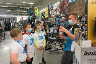 W dniu 8 grudnia nasi uczniowie wzięli udział w wycieczce do sklepu Decathlon, której głównym celem było kształtowanie wśród młodzieży właściwych postaw tj. dbałość o zdrowie i kondycję fizyczną, szlachetność i zaangażowanie społeczne. W ramach warsztatów prowadzonych przez pracowników sklepu Decathlon nasi uczniowie podzieleni zostali na cztery grupy i mieli do wykonania różnego rodzaju zadania np. jedna grupa poszukiwała wybranych produktów w sklepie (zgodnie z mapą i zaznaczonymi na niej punktami/ sektorami – to były świetne ćwiczenia orientacji w terenie zamkniętym i ćwiczenie rozwijające spostrzegawczość). Zadanie to było na czas, więc nie było łatwo, ale nasi nasze dziewczynki z kl 5 poradziły sobie wspaniale! Druga grupa miała do wydania określoną kwotę pieniędzy i miała zakupić np. sprzęt do uprawiania jazdy konnej. Były kalambury, mierzenie i dobieranie bezpiecznego kasku i roweru - do wysokości indywidualnej klienta, omówiono zasady bezpiecznego przemieszczania się rowerem i hulajnogą. Uczniowie mieli możliwość zapoznania się z działaniem nietypowych akcesoriów sportowych. Najwięcej radości sprawiły jednak, warsztaty sportowe i ćwiczenia praktyczne z zawodnikami klubu ENERGA MKS KALISZ z sekcji piłki ręcznej: Panem Kacprem Adamskim i Piotrem Krępa, którzy stwierdzili, iż wśród naszej młodzieży da się wyłonić parę talentów sportowych. Na koniec były wspólne zdjęcia, słodycze, napoje i owoce. Każde dziecko otrzymało bilet wstępu na mecz ENERGA MKS Kalisz, pamiątkową koszulkę i smycz.