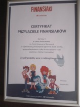 W mijającym półroczu uczniowie klas IV, V, VII,VIII brali udział w projekcie „FINANSIAKI”. Jest to projekt wspierający kształtowanie kompetencji z obszaru finansów i przedsiębiorczości. Patronat nad projektem sprawuje Santander Bank Polska S.A.