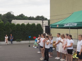 W sobotę, 15 czerwca 2024 roku odbył się w naszej szkole festyn rodzinny, którego mottem były słowa „ Rodzina kluczem do serc i wspomnień”. W tym wyjątkowym dniu byli z nami goście: radny gminy Zelazków p.Jacek Grzelak, p. Elżbieta Wojtyła - kierownik sekcji Oświaty Zdrowotnej i Promocji Zdrowia w Kaliszu, sołtysi wsi Skarszew i Skarszewek. Pani dyrektor Dorota Sobczak serdecznie powitała wszystkich zebranych, życzyła samych dobrych chwil oraz zaprosiła do korzystania z atrakcji zapewnionych przez Radę Rodziców i Sołectwo wsi Skarszewek.
