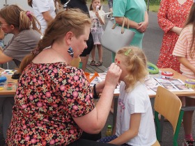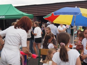W sferze rozrywki oferowano: fotobudkę, zamki dmuchane, zabawy z animatorami, malowanie twarzy, zaplatanie warkoczyków, robienie tatuaży, skręcanie balonów i zabawy plastyczne z wykorzystaniem folii sterczowej. Była też możliwość poznania pracy służb dzięki obecności strażaków z OSP w Skarszewie, prezentujących nowy samochód gaśniczy. Oczywiście na festynie nie mogło zabraknąć oferty kulinarnej. Wszyscy uczestnicy mogli delektować się lodami, ciastem, popcornem, a amatorzy bardziej kalorycznego posiłku korzystali z dań z grilla obsługiwanego przez naszych Drogich Rodziców.