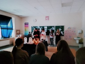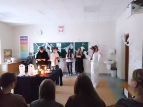 W dniu 24 listopada siódmoklasiści zaprosili uczniów klasy szóstej i ósmej na inscenizację „Dziadów” cz. II Adama Mickiewicza. Przedstawienie zostało przygotowane jako forma przybliżenia im treści lektury oraz tradycji obrzędów ludowych.
