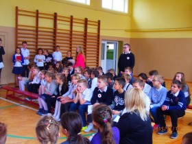Pierwsza zaczęła klasa „0”, która odśpiewała nasz hymn narodowy. Wszyscy pozostali im towarzyszyli. Uczniowie poszczególnych klas również mieli gotowe do odśpiewania ciekawe utwory, a mianowicie: „Rozszumiały się wierzby płaczące”, „O mój rozmarynie”, „Rozkwitały pąki białych róż” i wiele innych. Widoczne było, że występujący czuli patriotyczny klimat, a wystrój sali temu odpowiadał, ponieważ miał biało-czerwone barwy. Pan Tomasz, muzyk naszej szkoły, przygrywał melodie na swoim instrumencie, a uczennica klasy VI pod koniec zagrała na skrzypcach „Rotę”. Młodzież i dzieci przyglądali się występowi.