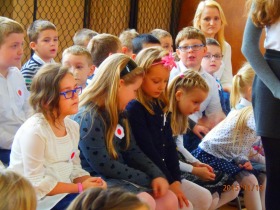 Na samym początku uczniowie klasy „0” zaśpiewali hymn narodowy. Następnie reprezentanci klasy V przedstawili nam informacje na temat Święta Niepodległości. Później Zuzanna van Diepen zagrała na skrzypcach „Rotę” i „Rozszumiały się wierzby płaczące”. Uroczystość prowadzili: Bartosz Szalski, Marta Górczyńska, Gabriela Andrzejewska, Krzysztof Duras i Magdalena Nogaj. Maria Bryła wyrecytowała przepiękny wiersz. Uczniowie wszystkich klas ładnie zaśpiewali pieśni patriotyczne. Na koniec Pani Dyrektor wygłosiła przemowę o Dniu Niepodległości. Emocje były pozytywne i atmosfera miła.