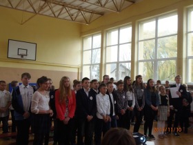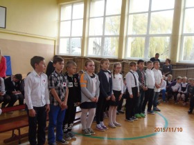 Dnia 10.11.2015 r. od godziny 9:25 do godziny 10:10 trwał szkolny apel z okazji Narodowego Święta Niepodległości. Uczniowie mieli za zadanie przygotować się do śpiewu pieśni patriotycznych.