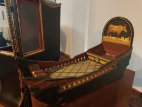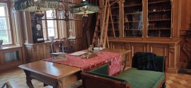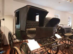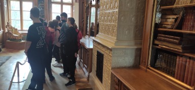 W pierwszej kolejności pojechaliśmy do rogalińskiego pałacu, który jest nie tylko spektakularną bryłą, ale również zawiera niezwykłe wnętrza i elewacje. Najpierw poszliśmy do ciekawego miejsca, jakim jest powozownia. Zawiera ona budzące zachwyt karety – w tym czteroosobową karetę pięciookienną, dwa powozy victorie, sanie wyjazdowe – otwarte z futrzanym przykryciem oraz dziecięce saneczki, które były przeznaczone do zabawy z psim zaprzęgiem.