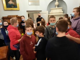 Ostatnią atrakcją w Rogalinie była lekcja historii przez zabawę i rozwiązywanie quizów o rodzinie Raczyńskich, dogłębnych szczegółach z ich życia oraz wydarzeniach historycznych. Cała grupa była podzielona na czteroosobowe zespoły, które zdobywały punkty.